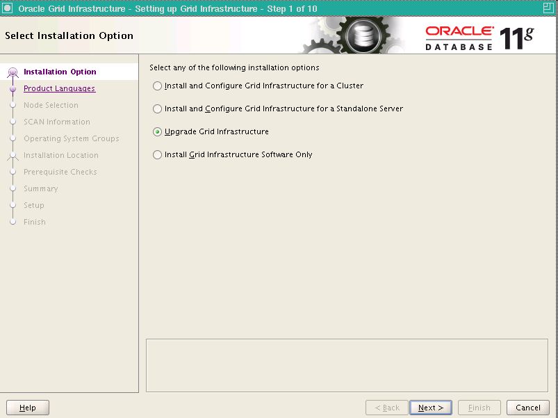 First of all, the CRS upgrade is a rolling upgrade regardless what you chose. Also, ASM is now running out of the Grid Infrastructure home, so any existing ASM homes will no longer be needed. Don’t worry, the OUI can upgrade ASM transparently for you. If you’re lucky and on 11g Release 1, this could actually be a rolling upgrade as well. Since I’m on 10.2, this is not an option and the whole upgrade will require downtime. I wouldn’t not allow OUI to upgrade ASM as the migration isn’t finished until ASM is 11.2 as well.