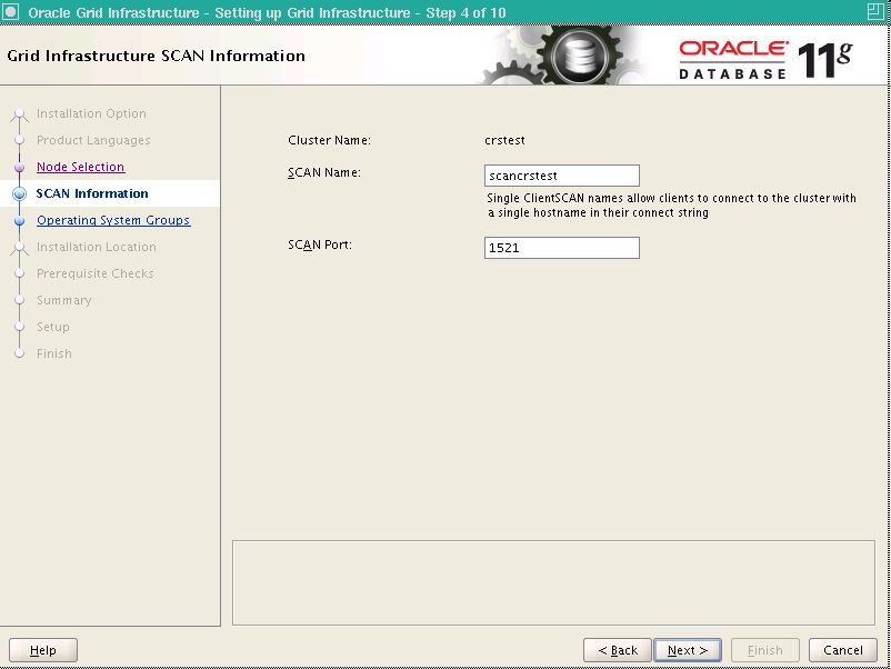 “With this release, the single client access name (SCAN) is the hostname to provide for all clients connecting to the cluster. The SCAN is a domain name registered to at least one and up to three IP addresses, either in the domain name service (DNS) or the Grid Naming Service (GNS). The SCAN eliminates the need to change clients when nodes are added to or removed from the cluster. Clients using the SCAN can also access the cluster using EZCONNECT.”