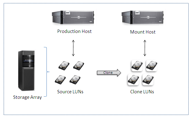 For quite a while Oracle DBAs have performed split mirror backups using special devices called “Business Continuance Volumes” or BCVs for short. A BCV is a special mirror copy of a LUN on the same storage array as the primary copy.