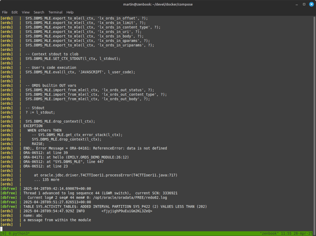 - And you can see that ORDS passed your code snippet to DBMS_MLE